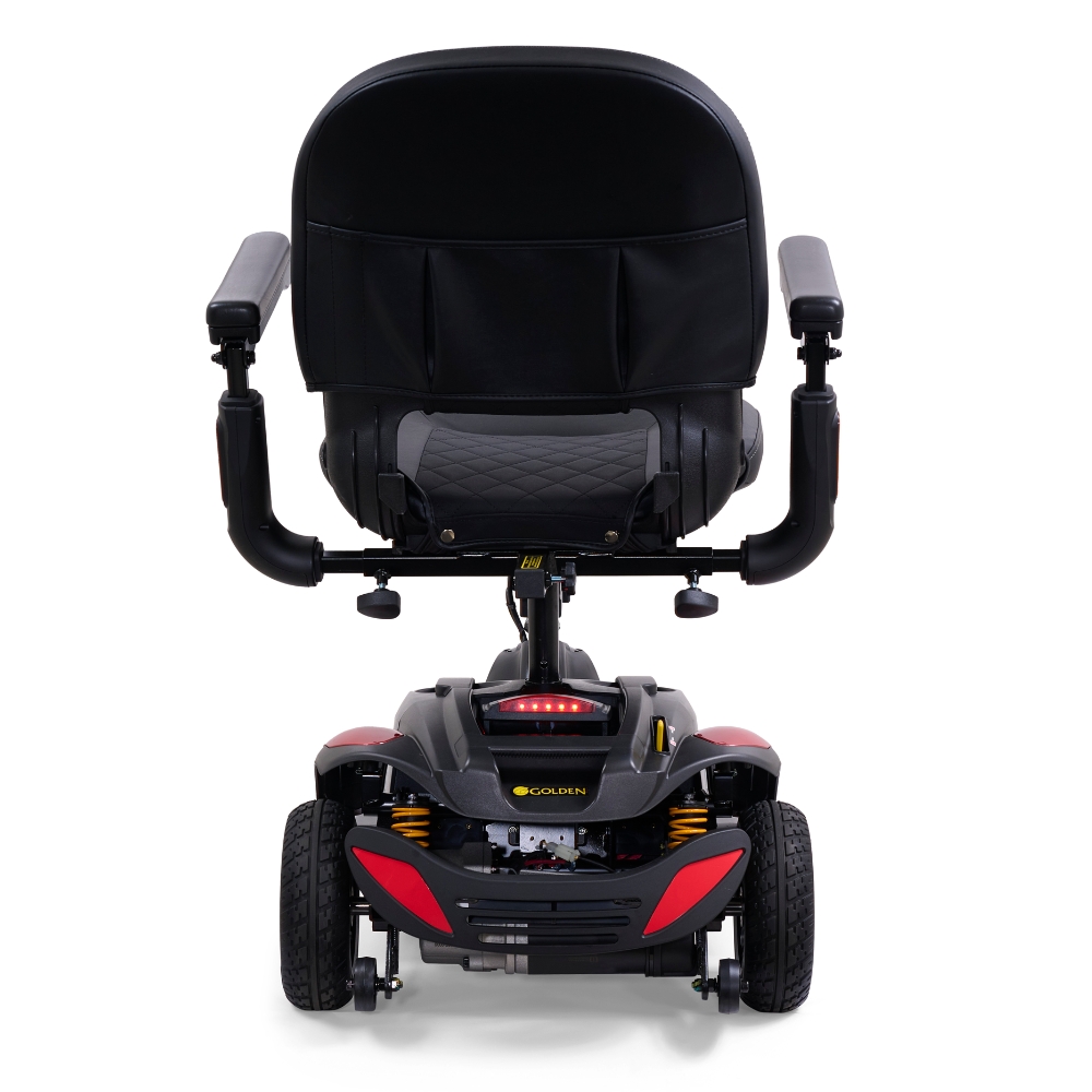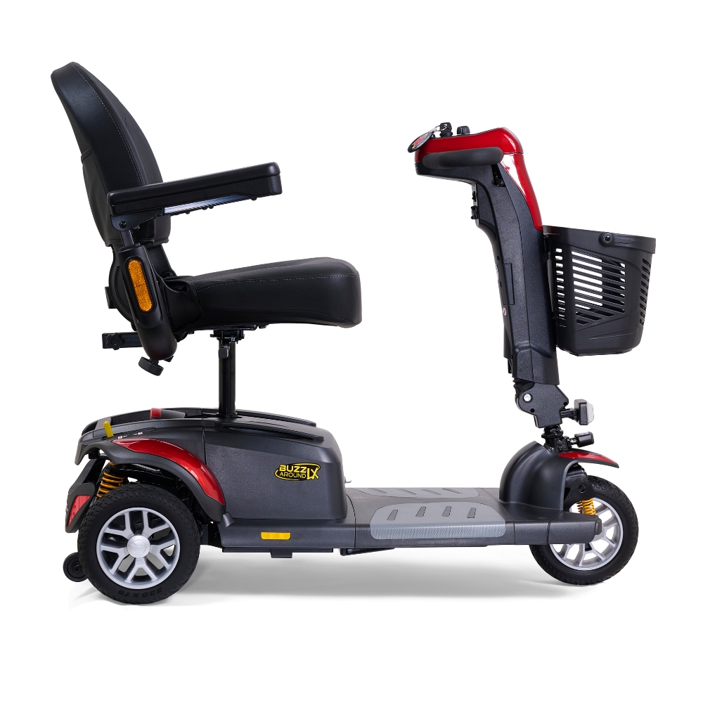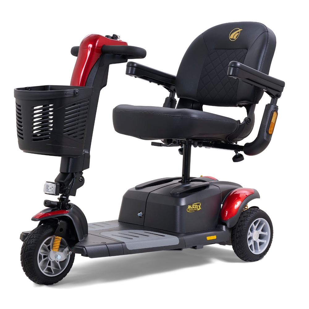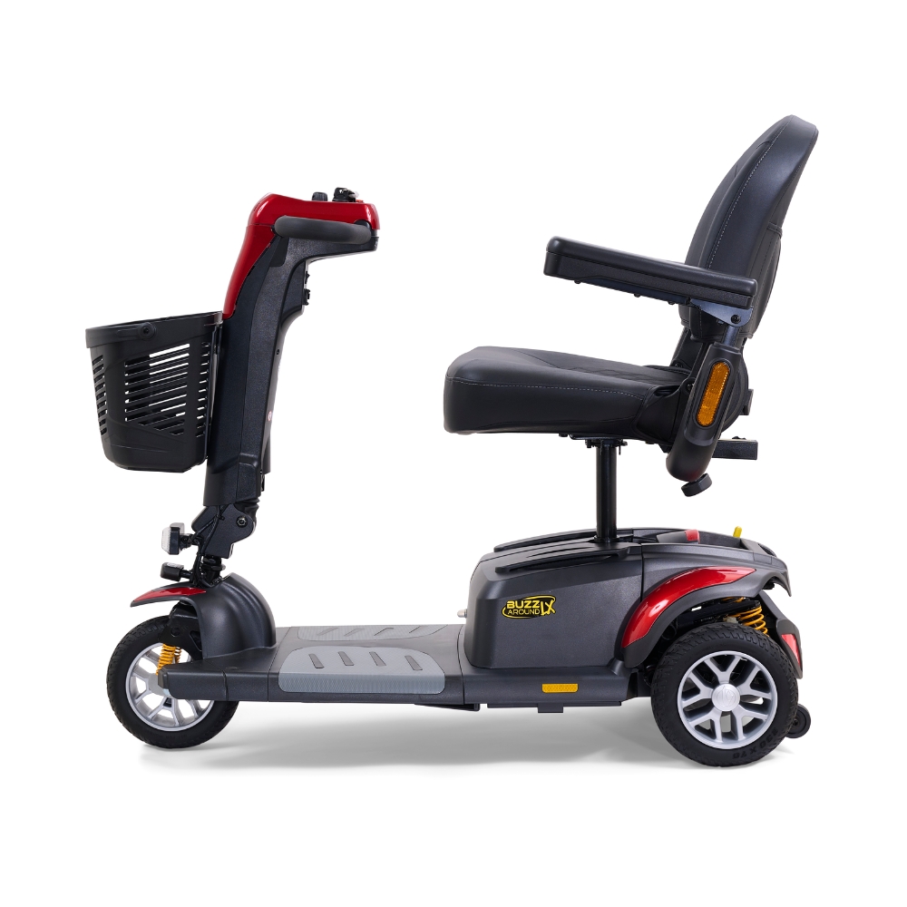 The Golden Buzzaround LX 4-Wheel is one of the industry’s only luxury travel scooters, combining full-size comfort features with a frame that disassembles easily for transport. It’s built for riders who want a smoother, more supportive experience without giving up the convenience of a take-apart scooter.