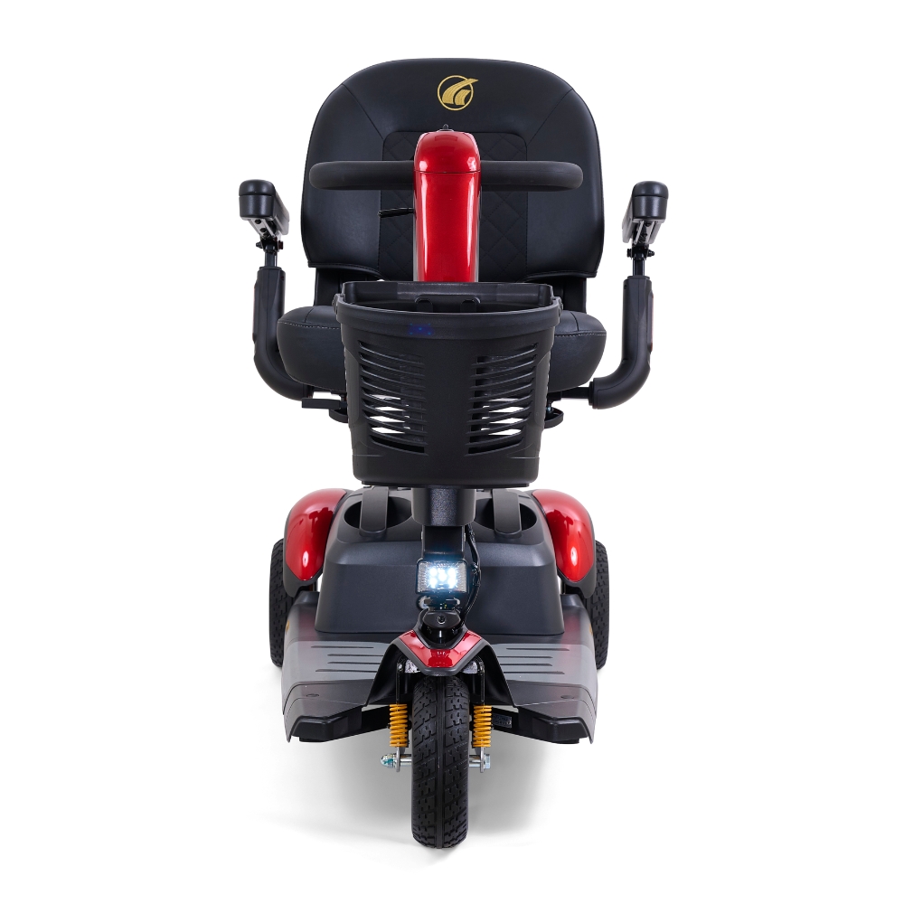 Rear suspension enhances stability and absorbs bumps for improved outdoor performance, while the spacious high-back stadium seat provides excellent comfort on longer trips. With a 375 lb weight capacity, the Buzzaround LX offers reliable support for a wide range of users.