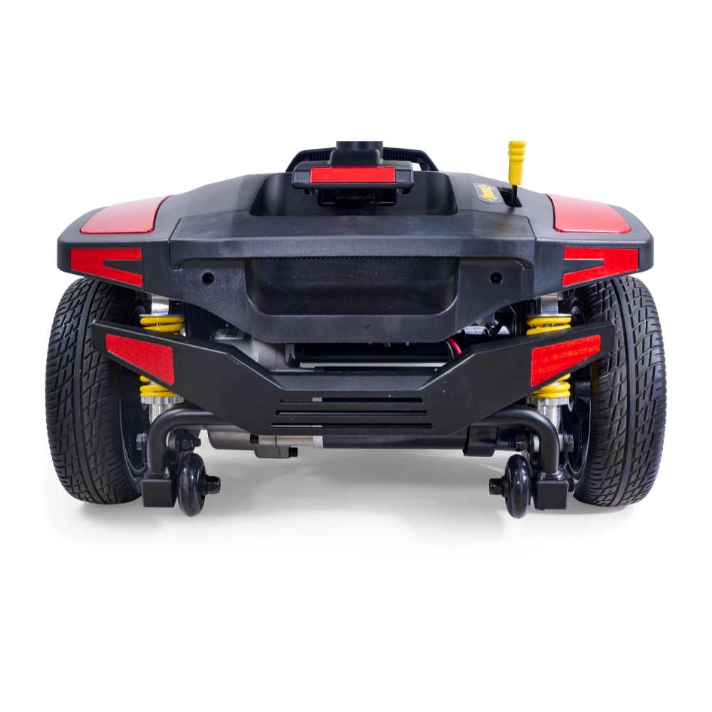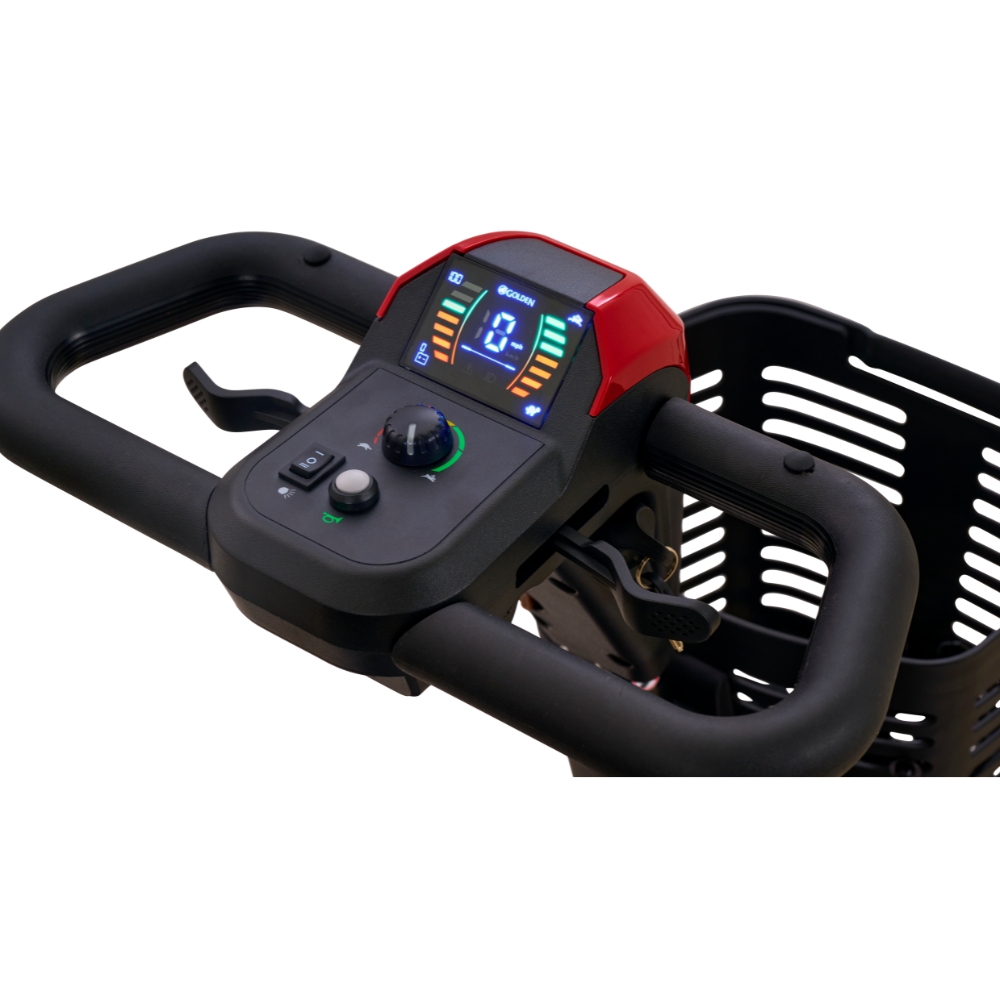 Ride comfortably with front and rear suspension, a breathable stadium-style mesh seat, and width- and angle-adjustable flip-up armrests. The wraparound Delta tiller promotes relaxed hand positioning, while the color LED console displays speed and battery levels at a glance.