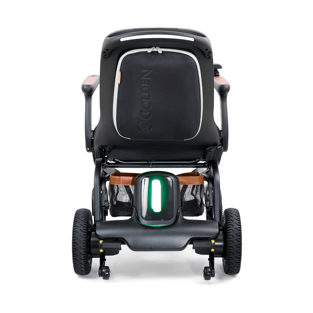 Ally’s airline-friendly 12Ah lithium-ion battery, USB-A & USB-C ports, system monitoring voice alerts, and optional mobile app remote control make travel simple. Front & rear lighting enhances visibility, and the chair folds quickly for compact storage and transport.