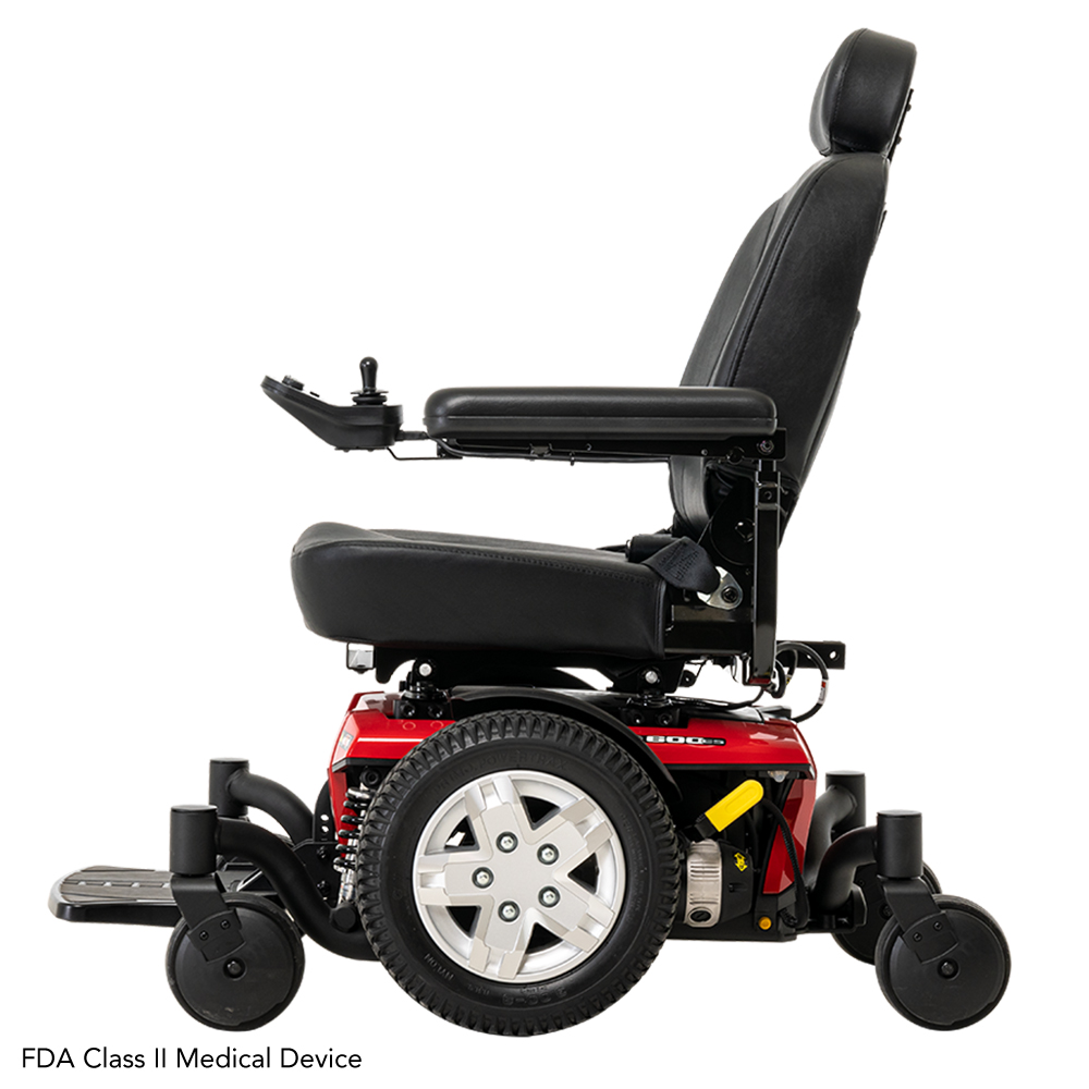 This power wheelchair is built to handle everyday environments with ease—offering a 2.75″ ground clearance, regenerative braking and a sturdy frame backed by a 5-year limited warranty on the frame. Whether you’re navigating tight hallways or moving outdoors, the Jazzy 600 ES provides dependable performance.
