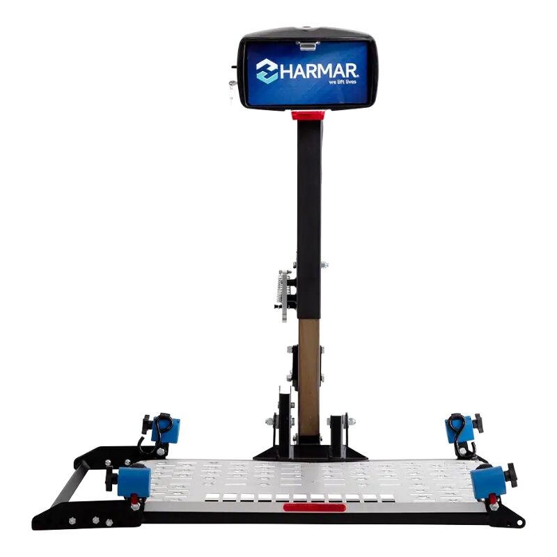The Harmar AL300 Fusion Lift is a versatile, fully powered hitch-mounted lift designed to transport both power wheelchairs and scooters. Its large aluminum deck, adjustable rear wheel cradle, and automatic self-tensioning retractors make loading and securing your mobility device simple and reliable. With a 350‑pound lifting capacity, this lift is ideal for users who need a strong, universal platform solution.